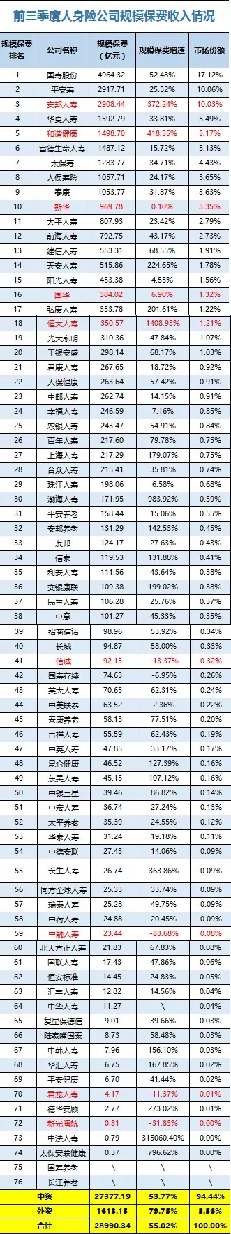 前三季度保费数据出炉:信诚、君康等五险企保费不升反降,中华财险等15家财险公司仍持续负增长行业动态