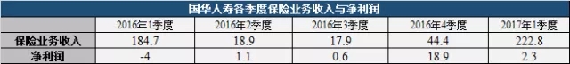 国华人寿亦如此,2016年一季度保费占比极高,达到近70%,却亏损4亿,而四季度单季保费收入44.4亿,占全年保费不到17%,却获净利润18.9亿元,实现全年扭亏为盈。
