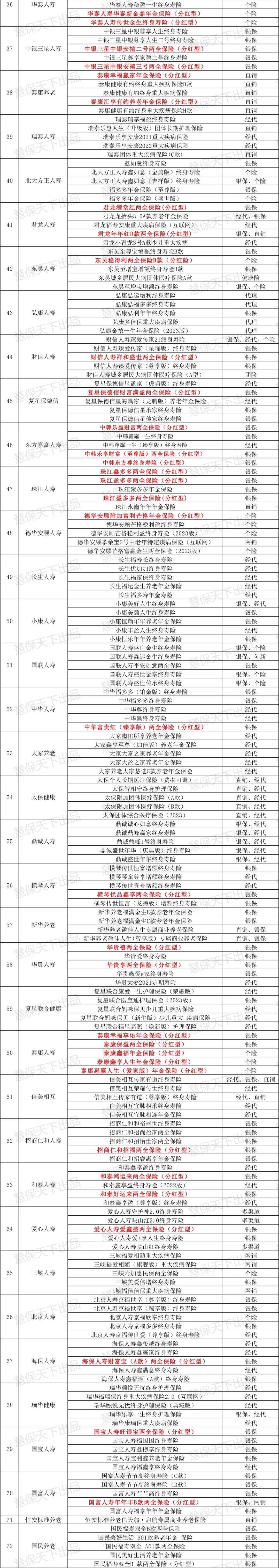从公司和产品数量来看,据『慧保天下』统计,在2024年年报中披露保费收入最高的前五大产品的72家人身险公司中,只有40家公司的前五大产品涉及分红险,较2023年不但没有增加,反而减少5家;对应的分红险产品也只有72款,较2023年减少7款。