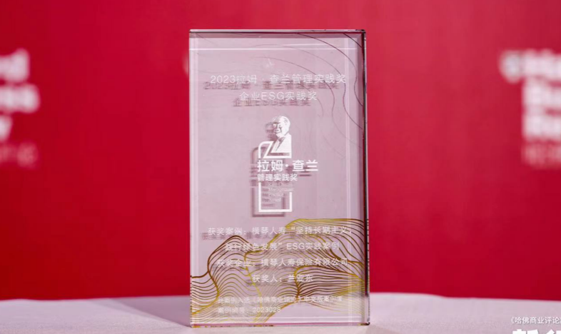 10月26日-27日,主题为“新行动主义”的《哈佛商业评论》中国年会在北京召开,第七届拉姆·查兰管理实践奖也在大会期间隆重揭晓。横琴人寿获评“2023 拉姆·查兰管理实践奖-企业ESG实践奖”,公司“坚持长期主义,践行绿色发展”ESG实践案例已入选《哈佛商业评论》中文案例库。