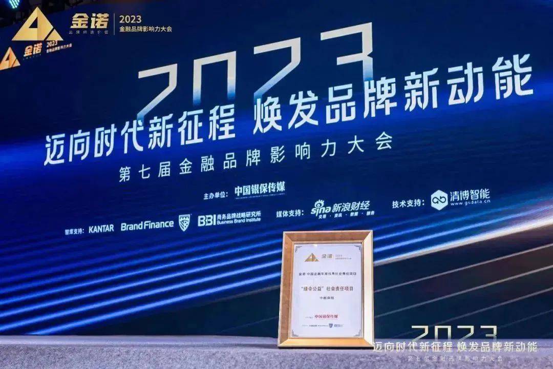 2023年5月10日,第七届金诺·中国金融品牌影响力传播案例征集活动获奖名单公布,中邮保险“绿伞公益”社会责任项目获评“年度优秀社会责任项目”。