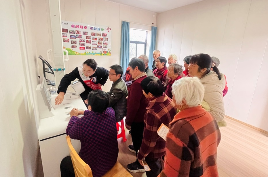求真务实抓落实,实事求是、真抓实干。为解决老年人体检难、看病远等痛点,项目构建“线下+线上”融合服务体系。线下在养老机构和网点部署新型“数智健康体检一体机”,免费提供血压、血糖等11项指标“一站式”检测。线上接入互联网医院平台,打造AI中医诊断、视频问诊、电子健康档案管理等智慧服务矩阵,配套“绿色通道+全程陪诊”就医保障。2024年开展健康服务累计惠及3.2万人次,真正实现“小病不出社区,大病精准导医”。
